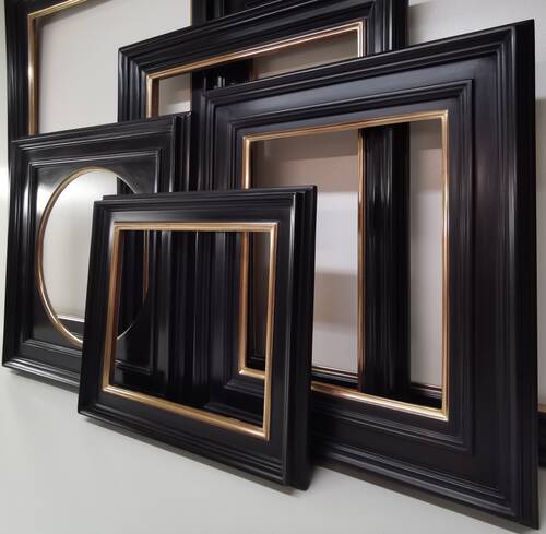 In my workshop, I create custom frames for paintings that can take on many styles – from simple, minimalist profiles to richly decorated ornamental frames. A popular choice includes vintage frames, which add a noble, retro character to artworks, as well as modern frames – simple, geometric, and perfectly suited to contemporary interiors.