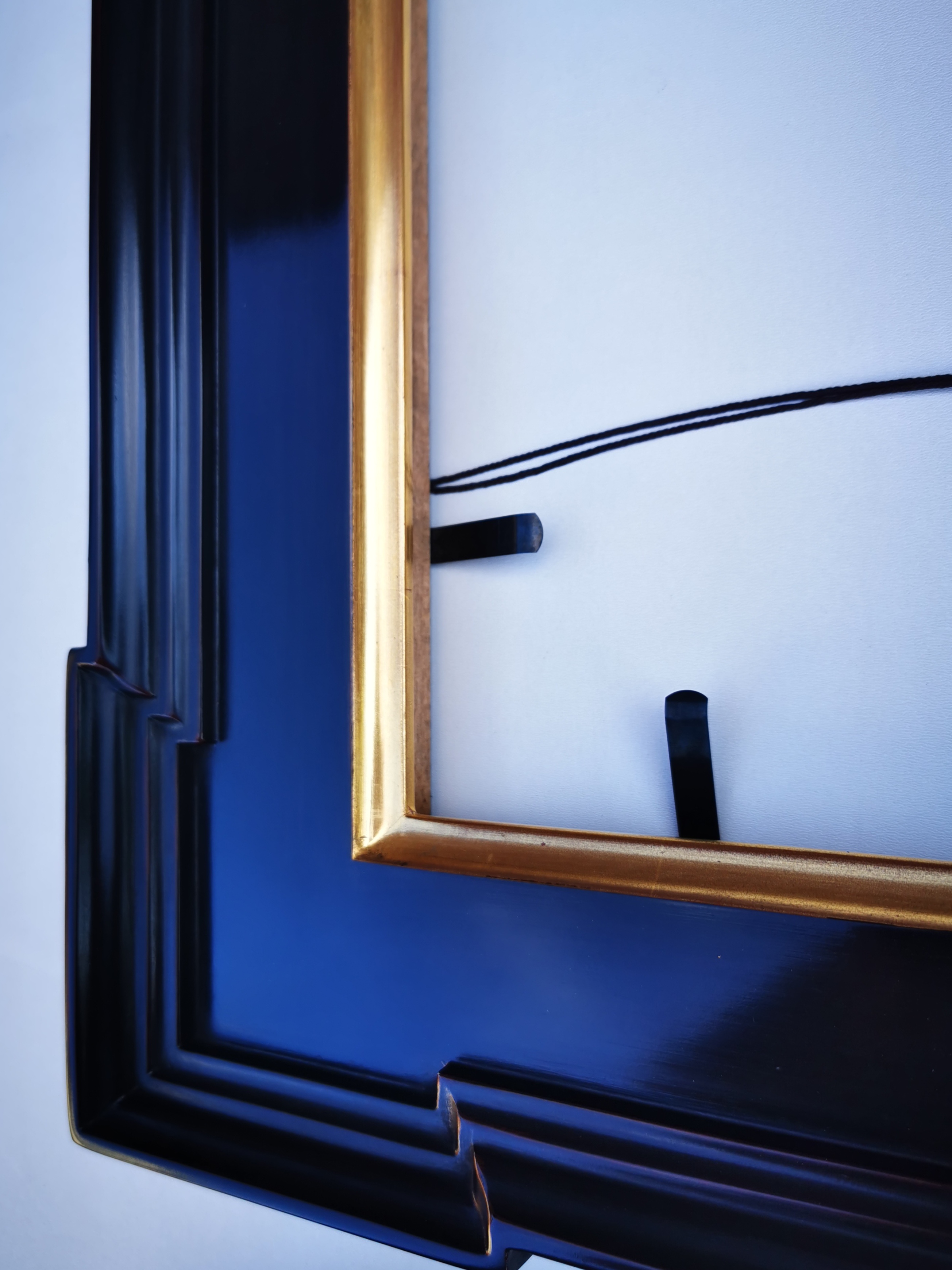 Each picture frame is prepared by hand: from woodworking and black painting to gold leaf gilding. Hand-painted brushstrokes give the surface a subtle texture, and 23K gold leaf applied sheet by sheet on a red base creates a deep, warm glow.