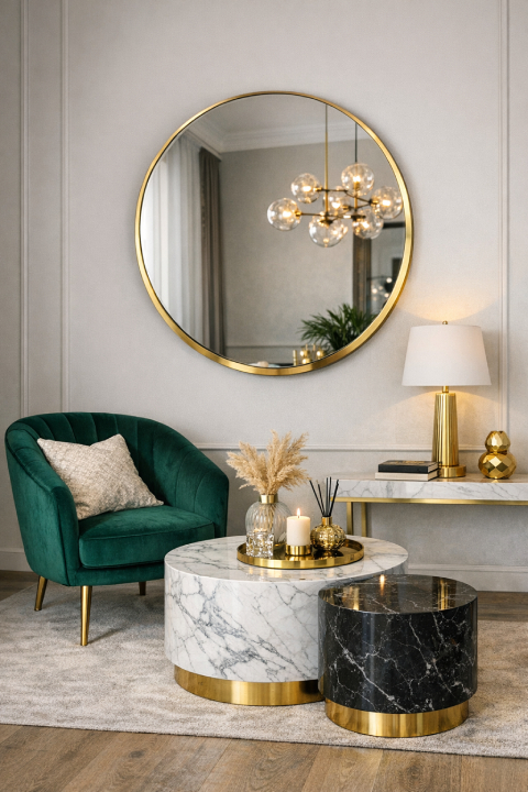 W nowoczesnych aranżacjach coraz częściej pojawiają się okrągłe lustra glamour. Ich subtelna forma i elegancki charakter doskonale komponują się z innymi elementami wystroju. Najczęściej zestawiane są z:
