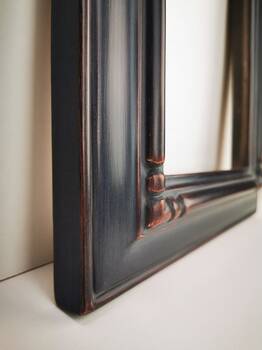 Ręcznie malowana na głęboki czarny kolor, z subtelnymi przetarciami odsłaniającymi ciepły czerwony grunt, nadaje każdemu wnętrzu niepowtarzalnego charakteru. Idealna do oprawy obrazów na blejtramie o grubości do 20 mm, a także zdjęć czy akwareli, dostępna jest w wersji z lub bez szkła.