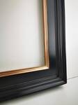 Closed corner style picture frame, painted black, water gilded lip with 22 carat moon gold leave over red bole.